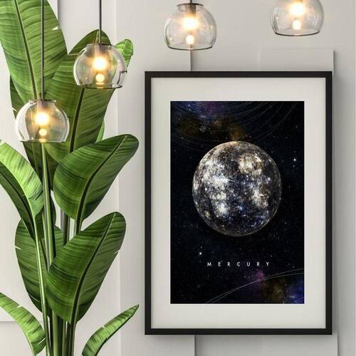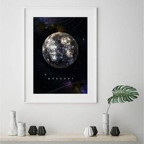 Quadro planeta mercúrio - 60x48cm Moldura: madeira branca Informações do produto tire todas as suas dúvidas no descritivo abaixo: decoração para quarto, sala, cozinha, escritório, área gourmet e muito mais. Chega de paredes vazias medidas - cada peça tem 60x48cm . Material do papel - papel fotográfico brilhante de altíssima resolução acabamento - todos os quadros são acompanhados de vidro para proteção da imagem. - moldura em madeira maciça na cor preta ou branca conforme produto escolhido e pendurador. - paspatur branco com 7cm de largura - os quadros são embalados de forma segura com plástico bolha com camada dupla de acordo com o tamanho dos quadros. Garantia - garantia de 3 meses. Meu quadro chegou. Como posso fixá-lo Você precisa apenas de um martelo e um prego, pois os quadros já vão acompanhados de penduradores. Esta é a forma mais indicada. Como posso limpar meu quadro A limpeza é feita como um móvel comum da sua casa. Apenas um pano seco ou espanador são suficientes para tal