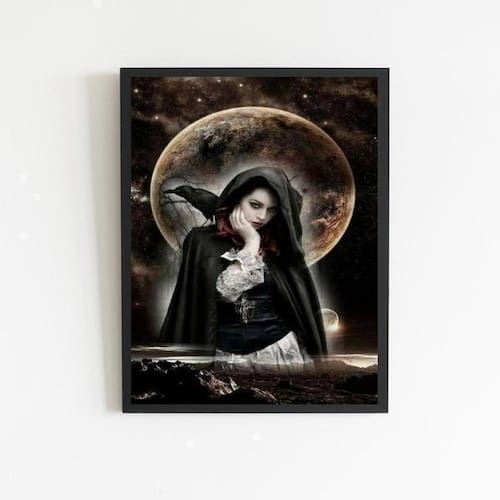 Quadro pombagira dama da noite 45x34cm Moldura: madeira preta
