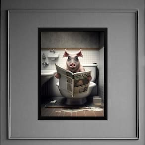 Quadro porco no banheiro lendo jornal 33x24cm Moldura: madeira branca Informações do produto tire todas as suas dúvidas no descritivo abaixo: decoração para quarto, sala, cozinha, escritório, área gourmet e muito mais. Chega de paredes vazias medidas - cada peça tem 33x24cm a4 . Material do papel - papel fotográfico brilhante de altíssima resolução acabamento - todos os quadros são acompanhados de uma película de acetato para proteção da imagem. - os quadros são embalados de forma segura com plástico bolha com camada dupla de acordo com o tamanho dos quadros. - de 3 meses. Meu quadro chegou. Como posso fixá-lo Você precisa apenas de um martelo e um prego, pois os quadros já vão acompanhados de penduradores. Esta é a forma mais indicada. Caso prefira, você pode utilizar uma fita dupla face neste caso, sugerimos de alta qualidade para evitar que descole e seu quadro caia . Como posso limpar meu quadro A limpeza é feita como um móvel comum da sua casa. Apenas um pano seco ou espanador são suficientes para tal Marca: Não Informado