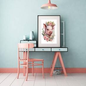 Quadro porquinho floral - 60x48cm Moldura: madeira preta Informações do produto tire todas as suas dúvidas no descritivo abaixo: decoração para quarto, sala, cozinha, escritório, área gourmet e muito mais. Chega de paredes vazias medidas - cada peça tem 60x48cm . Material do papel - papel fotográfico brilhante de altíssima resolução acabamento - todos os quadros são acompanhados de vidro para proteção da imagem. - moldura em madeira maciça na cor preta ou branca conforme produto escolhido e pendurador. - paspatur branco com 7cm de largura - os quadros são embalados de forma segura com plástico bolha com camada dupla de acordo com o tamanho dos quadros. Garantia - garantia de 3 meses. Meu quadro chegou. Como posso fixá-lo Você precisa apenas de um martelo e um prego, pois os quadros já vão acompanhados de penduradores. Esta é a forma mais indicada. Como posso limpar meu quadro A limpeza é feita como um móvel comum da sua casa. Apenas um pano seco ou espanador são suficientes para tal