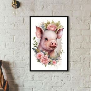 Quadro porquinho floral - aquarela 45x34cm - com vidro Moldura: madeira preta Informações do produto tire todas as suas dúvidas no descritivo abaixo: decoração para quarto, sala, cozinha, escritório, área gourmet e muito mais. Chega de paredes vazias medidas - cada peça tem 45x34cm a3 . Material do papel - papel fotográfico brilhante de altíssima resolução acabamento - todos os quadros são acompanhados de vidro para proteção da imagem. - moldura em madeira maciça na cor preta ou branca conforme produto escolhido e pendurador . - os quadros são embalados de forma segura com plástico bolha com camada dupla de acordo com o tamanho dos quadros. Garantia - garantia de 3 meses. Meu quadro chegou. Como posso fixá-lo Você precisa apenas de um martelo e um prego, pois os quadros já vão acompanhados de penduradores. Esta é a forma mais indicada. Como posso limpar meu quadro A limpeza é feita como um móvel comum da sua casa. Apenas um pano seco ou espanador são suficientes para tal