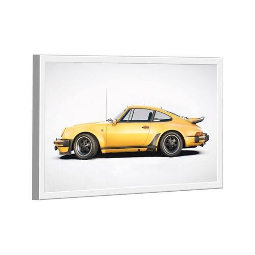 Quadro Porsche 911 Amarelo Lado -- BR ARTES Moldura Branca - Ultra Grande 150x100 -