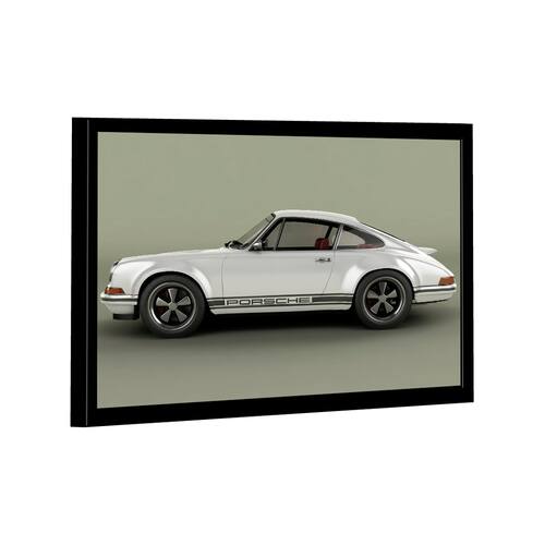 Quadro Porsche 911 Branco Metálico Lado -- BR ARTES Moldura Preta - Médio 84x54 -