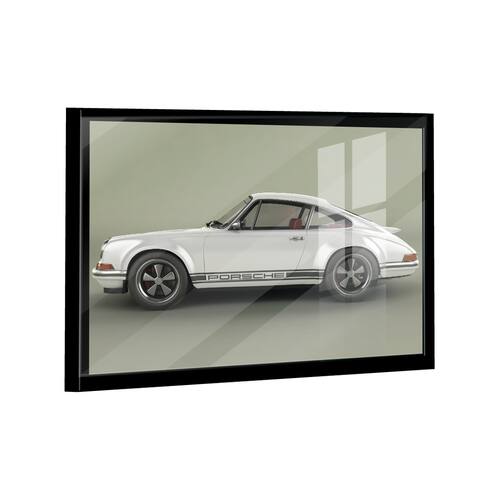 Quadro Porsche 911 Branco Metálico Lado -- BR ARTES Moldura Preta e Vidro - Pequeno 60x40 -