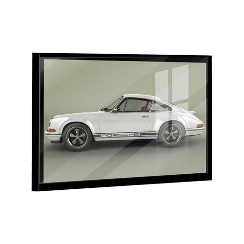 Quadro Porsche 911 Branco Metálico Lado -- Br Artes Quadro Porsche 911 Branco Metálico Lado -- BR ARTES Moldura Preta e Vidro - Médio 84x54 - - Qualidade Premium (padrão museu)