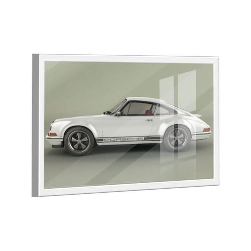 Quadro Porsche 911 Branco Metálico Lado -- Br Artes Quadro Porsche 911 Branco Metálico Lado -- BR ARTES Moldura Branca e Vidro - Médio 84x54 - - Qualidade Premium (padrão museu)