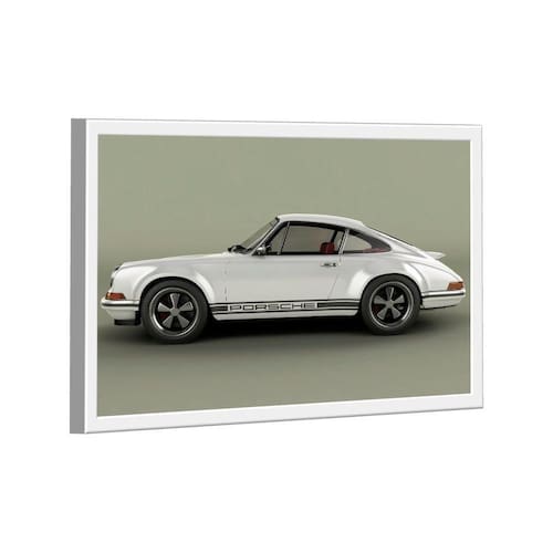 Quadro Porsche 911 Branco Metálico Lado -- BR ARTES Moldura Branca - Ultra Grande 150x100 -