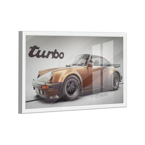 Quadro Porsche Gold 911 Turbo -- Br Artes Quadro Porsche Gold 911 Turbo -- BR ARTES Moldura Branca e Vidro - Pequeno 60x40 - - Qualidade Premium (padrão museu)