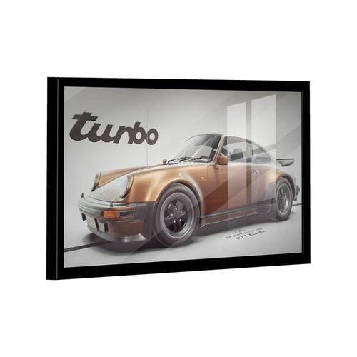 Quadro Porsche Gold 911 Turbo -- BR ARTES Moldura Preta e Vidro - Pequeno 60x40 -