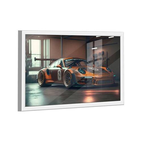 Quadro Porsche Gold -- Br Artes Quadro Porsche Gold -- BR ARTES Moldura Branca e Vidro - Gigante 180x105 - - Qualidade Premium (padrão museu)