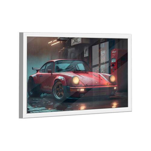 Quadro Porsche Vermelho -- Br Artes Quadro Porsche Vermelho -- BR ARTES Moldura Branca e Vidro - Gigante 180x105 - - Qualidade Premium (padrão museu)