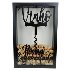Quadro porta rolhas - poesia engarrafada - 250 rolhas 35 x 52 Você já pensou em eternizar aquele momento incrível que você viveu com seu familiares ou amigos bebendo aquele vinho sensacional É exatamente isso que nosso quadro porta rolhas vai fazer por você. Deposite suas rolhas em nosso quadro e eternize seus momentos e lembranças mais especiais. Nosso quadro porta rolhas combina com vários tipos de decoração e torna qualquer ambiente sofisticado e com muito estilo. Devido a sua cor e acabamento, nosso porta rolhas é extremamente versátil e pode ser para decorar salas de estar, jantar, quartos e até mesmo cozinhas e home-offices. O design moderno e sofisticado do produto vai deixar seu ambiente único, agradável e aconchegante. Os quadros complementam a decoração com beleza e sofisticação trazendo harmonia e alegria ao ambiente. Produzidos com muito carinho, nossos quadros são exclusivos, você só encontra aqui. Tendo como grandes diferenciais o acabamento com pintura preta fosca laqueada, o que torna o produto muito moderno e luxuoso, e principalmente a frente com escrita em auto-relevo. Nosso acabamento em auto-relevo é inovador, não possuindo nada igual no mercado, tornando essa exclusividade outro grande diferencial do nosso produto. Nosso quadro porta rolhas é produzido com madeira de reflorestamento, mdf, vidro 2mm transparência muito superior ao acrílico e finalizado com uma pintura preta super resistente. Não perca tempo, adquira seu quadro porta rolhas agora e comece a colecionar momentos. Tamanho: 52cm altura x 35cm largura x 5,5cm profundidade Capacidade: 250 rolhas aproximadamente Indicações de uso: Pub Homebar Varandas e sacadas gourmet Clubes e grupos de degustação de vinho Cozinhas Salas em geral Home theater Garagens Obs: rolhas não acompanham o produto Marca: Não Informado