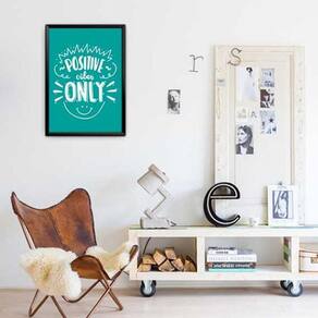 Quadro Positive A4 Quadro com moldura em madeira. Fita dupla face para pendurar sem sujeira. Este produto é a opção ideal para quem deseja comodidade na hora de decorar. informações do produto Moldura com 2cm de largura em madeira pinus com excelente acabamento fosco e arte impressa em vinil fosco alta durabilidade. Acompanha fita dupla face já instalada para pendurar a moldura e embalagem protetora com cantoneiras que evitam danos durante o transporte. Opções de formatos A4: gravuras no tamanho 21x30cm - medida externa: 24x33cm Prazo de produção: 03 a 05 após aprovação do pagamento. As cores podem ter pequenas variações em relação a imagem do seu monitor. As medidas podem sofrer mínimas variações. Marca: Não Informado