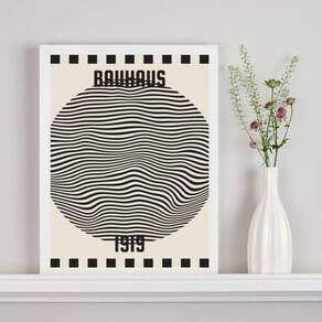 Quadro poster bauhaus - bola ondas 33x24cm Moldura: madeira preta Informações do produto tire todas as suas dúvidas no descritivo abaixo: decoração para quarto, sala, cozinha, escritório, área gourmet e muito mais. Chega de paredes vazias medidas - cada peça tem 33x24cm a4 . Material do papel - papel fotográfico brilhante de altíssima resolução acabamento - todos os quadros são acompanhados de uma película de acetato para proteção da imagem. - os quadros são embalados de forma segura com plástico bolha com camada dupla de acordo com o tamanho dos quadros. Garantia - garantia de 3 meses. Meu quadro chegou. Como posso fixá-lo Você precisa apenas de um martelo e um prego, pois os quadros já vão acompanhados de penduradores. Esta é a forma mais indicada. Caso prefira, você pode utilizar uma fita dupla face neste caso, sugerimos de alta qualidade para evitar que descole e seu quadro caia . Como posso limpar meu quadro A limpeza é feita como um móvel comum da sua casa. Apenas um pano seco ou espanador são suficientes para tal Ean: 7898676084744