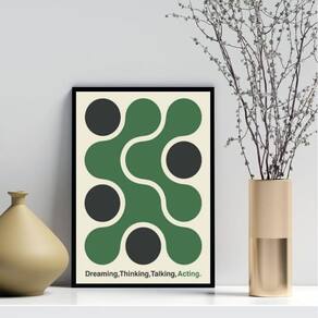 Quadro poster bauhaus verde - ação 33x24cm Cor: moldura preta Informações do produto tire todas as suas dúvidas no descritivo abaixo: decoração para quarto, sala, cozinha, escritório, área gourmet e muito mais. Chega de paredes vazias medidas - cada peça tem 33x24cm a4 . Material do papel - papel fotográfico brilhante de altíssima resolução acabamento - todos os quadros são acompanhados de uma película de acetato para proteção da imagem. - os quadros são embalados de forma segura com plástico bolha com camada dupla de acordo com o tamanho dos quadros. - de 3 meses. Meu quadro chegou. Como posso fixá-lo Você precisa apenas de um martelo e um prego, pois os quadros já vão acompanhados de penduradores. Esta é a forma mais indicada. Caso prefira, você pode utilizar uma fita dupla face neste caso, sugerimos de alta qualidade para evitar que descole e seu quadro caia . Como posso limpar meu quadro A limpeza é feita como um móvel comum da sua casa. Apenas um pano seco ou espanador são suficientes para tal