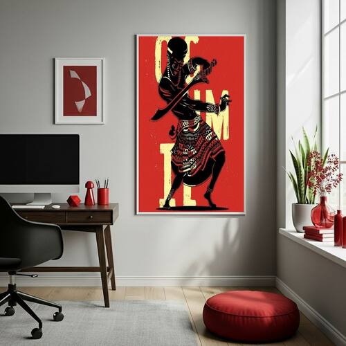 Quadro Poster Candomblé Ogum - 70x50cm - Cor: Moldura Branca