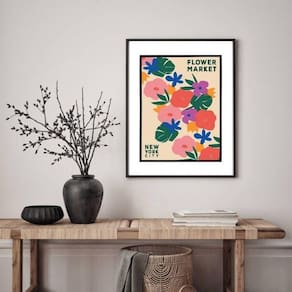 Quadro poster flower market - osaka 45x34cm Moldura: madeira branca Informações do produto tire todas as suas dúvidas no descritivo abaixo: decoração para quarto, sala, cozinha, escritório, área gourmet e muito mais. Chega de paredes vazias. Medidas - cada peça tem 45x34cm a3 . Material do papel - papel fotográfico brilhante de altíssima resolução acabamento - todos os quadros são acompanhados de uma película de acetato para proteção da imagem. - os quadros são embalados de forma segura com plástico bolha com camada dupla de acordo com o tamanho dos quadros. - de 3 meses. Meu quadro chegou. Como posso fixá-lo Você precisa apenas de um martelo e um prego, pois os quadros já vão acompanhados de penduradores. Esta é a forma mais indicada. Caso prefira, você pode utilizar uma fita dupla face neste caso, sugerimos de alta qualidade para evitar que descole e seu quadro caia . Como posso limpar meu quadro A limpeza é feita como um móvel comum da sua casa. Apenas um pano seco ou espanador são suficientes para tal Ean: 7896774835268