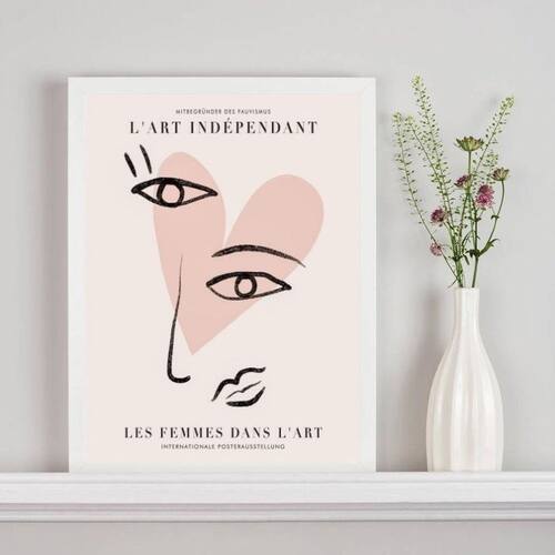 Quadro poster picasso coração rosa 33x24cm - com vidro