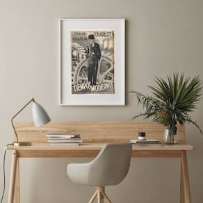 Quadro Poster Vintage Charlie Chaplin - 60x48cm - Cor: Moldura Branca