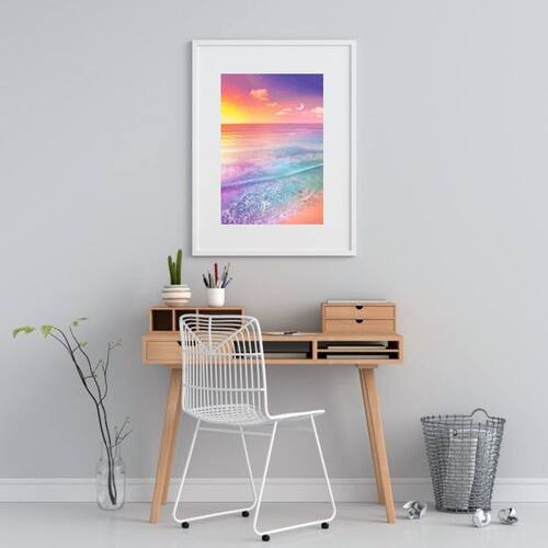 Quadro Praia Candy Colors - 60x48cm - Moldura: Madeira preta