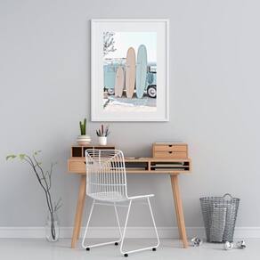 Quadro Praia Kombi Surf - 60x48cm - Moldura: Madeira branca