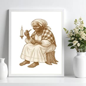 Quadro preta velha maria redonda 33x24cm - com vidro Cor: moldura branca Informações do produto tire todas as suas dúvidas no descritivo abaixo: decoração para quarto, sala, cozinha, escritório, área gourmet e muito mais. Chega de paredes vazias medidas - cada peça tem 33x24cm a4 . Material do papel - papel fotográfico brilhante de altíssima resolução acabamento - todos os quadros são acompanhados de vidro para proteção da imagem. - moldura em madeira maciça na cor preta ou branca conforme produto escolhido e pendurador . - os quadros são embalados de forma segura com plástico bolha com camada dupla de acordo com o tamanho dos quadros. - de 3 meses. Meu quadro chegou. Como posso fixá-lo Você precisa apenas de um martelo e um prego, pois os quadros já vão acompanhados de penduradores. Esta é a forma mais indicada. Como posso limpar meu quadro A limpeza é feita como um móvel comum da sua casa. Apenas um pano seco ou espanador são suficientes para tal