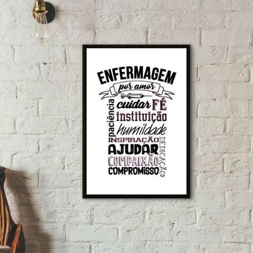 Quadro profissão enfermagem por amor 24x18cm - com vidro Moldura: madeira preta Informações do produto Decoração para quarto, sala, cozinha, escritório, área gourmet e muito mais. Chega de paredes vazias Medidas - cada peça tem 24x18cm a5 . Material do papel - papel fotográfico brilhante de altíssima resolução Acabamento - todos os quadros são acompanhados de vidro para proteção da imagem. - Moldura em madeira maciça na cor preta e pendurador. - Os quadros são embalados de forma segura com plástico bolha com camada dupla de acordo com o tamanho dos quadros. - de 3 meses. Meu quadro chegou. Como posso fixá-lo Você precisa apenas de um martelo e um prego, pois os quadros já vão acompanhados de penduradores. Esta é a forma mais indicada. Como posso limpar meu quadro A limpeza é feita como um móvel comum da sua casa. Apenas um pano seco ou espanador são suficientes para tal Marca: Não Informado