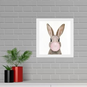 Quadro quadrado coelho chiclete - 33x33cm Cor: moldura preta Informações do produto tire todas as suas dúvidas no descritivo abaixo: decoração para quarto, sala, cozinha, escritório, área gourmet e muito mais. Chega de paredes vazias medidas - cada peça tem 33x33cm. Material do papel - papel fotográfico brilhante de altíssima resolução acabamento - todos os quadros são acompanhados de uma película de acetato para proteção da imagem. - os quadros são embalados de forma segura com plástico bolha com camada dupla de acordo com o tamanho dos quadros. - de 3 meses. Meu quadro chegou. Como posso fixá-lo Você precisa apenas de um martelo e um prego, pois os quadros já vão acompanhados de penduradores. Esta é a forma mais indicada. Caso prefira, você pode utilizar uma fita dupla face neste caso, sugerimos de alta qualidade para evitar que descole e seu quadro caia . Como posso limpar meu quadro A limpeza é feita como um móvel comum da sua casa. Apenas um pano seco ou espanador são suficientes para tal Marca: Não Informado Ean: 7901039761487