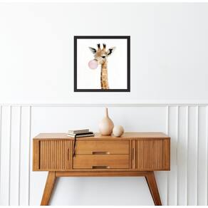 Quadro quadrado girafinha chiclete - 33x33cm - com vidro Cor: moldura branca Informações do produto tire todas as suas dúvidas no descritivo abaixo: decoração para quarto, sala, cozinha, escritório, área gourmet e muito mais. Chega de paredes vazias medidas - cada peça tem 33x33cm. Material do papel - papel fotográfico brilhante de altíssima resolução acabamento - todos os quadros são acompanhados de vidro para proteção da imagem. - moldura em madeira maciça na cor preta ou branca conforme produto escolhido e pendurador . - os quadros são embalados de forma segura com plástico bolha com camada dupla de acordo com o tamanho dos quadros. - de 3 meses. Meu quadro chegou. Como posso fixá-lo Você precisa apenas de um martelo e um prego, pois os quadros já vão acompanhados de penduradores. Esta é a forma mais indicada. Como posso limpar meu quadro A limpeza é feita como um móvel comum da sua casa. Apenas um pano seco ou espanador são suficientes para tal Marca: Não Informado