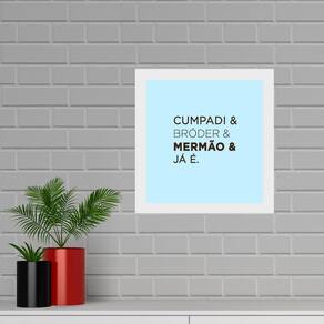 Quadro quadrado gírias carioca - 33x33cm - com vidro Cor: moldura preta Informações do produto tire todas as suas dúvidas no descritivo abaixo: decoração para quarto, sala, cozinha, escritório, área gourmet e muito mais. Chega de paredes vazias medidas - cada peça tem 33x33cm. Material do papel - papel fotográfico brilhante de altíssima resolução acabamento - todos os quadros são acompanhados de vidro para proteção da imagem. - moldura em madeira maciça na cor preta ou branca conforme produto escolhido e pendurador . - os quadros são embalados de forma segura com plástico bolha com camada dupla de acordo com o tamanho dos quadros. - de 3 meses. Meu quadro chegou. Como posso fixá-lo Você precisa apenas de um martelo e um prego, pois os quadros já vão acompanhados de penduradores. Esta é a forma mais indicada. Como posso limpar meu quadro A limpeza é feita como um móvel comum da sua casa. Apenas um pano seco ou espanador são suficientes para tal Marca: Não Informado Ean: 7901039761708
