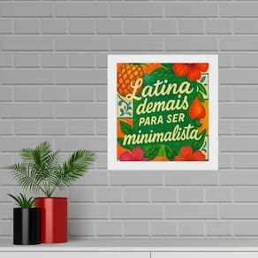 Quadro quadrado latina demais para ser minimalista - 33x33cm - com vidro Cor: moldura preta Informações do produto tire todas as suas dúvidas no descritivo abaixo: decoração para quarto, sala, cozinha, escritório, área gourmet e muito mais. Chega de paredes vazias medidas - cada peça tem 33x33cm. Material do papel - papel fotográfico brilhante de altíssima resolução acabamento - todos os quadros são acompanhados de vidro para proteção da imagem. - moldura em madeira maciça na cor preta ou branca conforme produto escolhido e pendurador . - os quadros são embalados de forma segura com plástico bolha com camada dupla de acordo com o tamanho dos quadros. - de 3 meses. Meu quadro chegou. Como posso fixá-lo Você precisa apenas de um martelo e um prego, pois os quadros já vão acompanhados de penduradores. Esta é a forma mais indicada. Como posso limpar meu quadro A limpeza é feita como um móvel comum da sua casa. Apenas um pano seco ou espanador são suficientes para tal Marca: Não Informado Ean: 7901039761906
