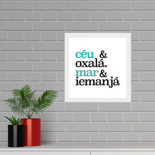 Quadro quadrado oxalá e iemanjá - 33x33cm Cor: moldura preta Informações do produto tire todas as suas dúvidas no descritivo abaixo: decoração para quarto, sala, cozinha, escritório, área gourmet e muito mais. Chega de paredes vazias medidas - cada peça tem 33x33cm. Material do papel - papel fotográfico brilhante de altíssima resolução acabamento - todos os quadros são acompanhados de uma película de acetato para proteção da imagem. - os quadros são embalados de forma segura com plástico bolha com camada dupla de acordo com o tamanho dos quadros. - de 3 meses. Meu quadro chegou. Como posso fixá-lo Você precisa apenas de um martelo e um prego, pois os quadros já vão acompanhados de penduradores. Esta é a forma mais indicada. Caso prefira, você pode utilizar uma fita dupla face neste caso, sugerimos de alta qualidade para evitar que descole e seu quadro caia . Como posso limpar meu quadro A limpeza é feita como um móvel comum da sua casa. Apenas um pano seco ou espanador são suficientes para tal Marca: Não Informado