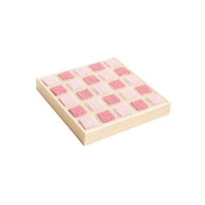 Cor: Lã rosa e moldura em madeira natural, pode ocorrer alteração no tom da madeira de uma peça para outra.
