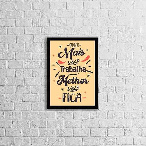Quadro quanto mais você trabalha, melhor você fica 45x34cm - com vidro Moldura: madeira preta Informações do produto tire todas as suas dúvidas no descritivo abaixo: decoração para quarto, sala, cozinha, escritório, área gourmet e muito mais. Chega de paredes vazias medidas - cada peça tem 45x34cm a3 . Material do papel - papel fotográfico brilhante de altíssima resolução acabamento - todos os quadros são acompanhados de vidro para proteção da imagem. - moldura em madeira maciça na cor preta e pendurador . - os quadros são embalados de forma segura com plástico bolha com camada dupla de acordo com o tamanho dos quadros. - de 3 meses. Meu quadro chegou. Como posso fixá-lo Você precisa apenas de um martelo e um prego, pois os quadros já vão acompanhados de penduradores. Esta é a forma mais indicada. Como posso limpar meu quadro A limpeza é feita como um móvel comum da sua casa. Apenas um pano seco ou espanador são suficientes para tal Marca: Não Informado