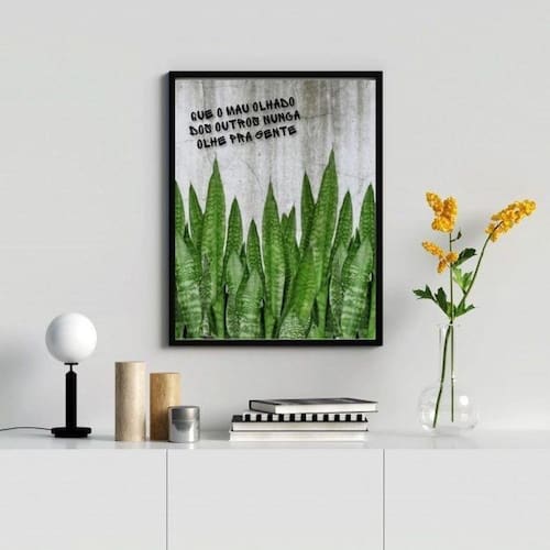 Quadro que o mau olhado dos outros não olhe pra gente 45x34cm Moldura: madeira branca Informações do produto tire todas as suas dúvidas no descritivo abaixo: decoração para quarto, sala, cozinha, escritório, área gourmet e muito mais. Chega de paredes vazias. Medidas - cada peça tem 45x34cm a3 . Material do papel - papel fotográfico brilhante de altíssima resolução acabamento - todos os quadros são acompanhados de uma película de acetato para proteção da imagem. - os quadros são embalados de forma segura com plástico bolha com camada dupla de acordo com o tamanho dos quadros. - de 3 meses. Meu quadro chegou. Como posso fixá-lo Você precisa apenas de um martelo e um prego, pois os quadros já vão acompanhados de penduradores. Esta é a forma mais indicada. Caso prefira, você pode utilizar uma fita dupla face neste caso, sugerimos de alta qualidade para evitar que descole e seu quadro caia . Como posso limpar meu quadro A limpeza é feita como um móvel comum da sua casa. Apenas um pano seco ou espanador são suficientes para tal Marca: Não Informado