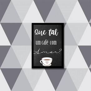 Quadro que tal um café com amor 24x18cm - com vidro Moldura: madeira preta Informações do produto tire todas as suas dúvidas no descritivo abaixo: decoração para quarto, sala, cozinha, escritório, área gourmet e muito mais. Chega de paredes vazias medidas - cada peça tem 24x18cm a5 . Material do papel - papel fotográfico brilhante de altíssima resolução acabamento - todos os quadros são acompanhados de vidro para proteção da imagem. - moldura em madeira maciça na cor preta e pendurador . - os quadros são embalados de forma segura com plástico bolha com camada dupla de acordo com o tamanho dos quadros. - de 3 meses. Meu quadro chegou. Como posso fixá-lo Você precisa apenas de um martelo e um prego, pois os quadros já vão acompanhados de penduradores. Esta é a forma mais indicada. Como posso limpar meu quadro A limpeza é feita como um móvel comum da sua casa. Apenas um pano seco ou espanador são suficientes para tal