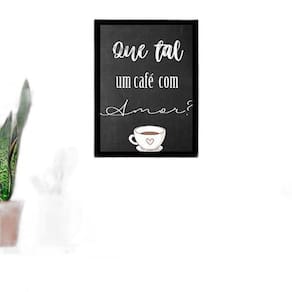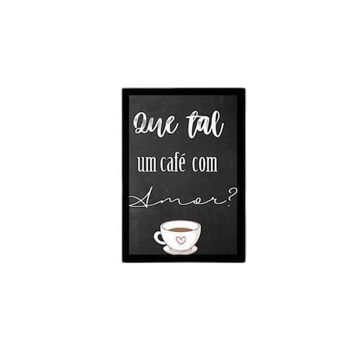 Quadro que tal um café com amor 24x18cm Moldura: madeira preta Informações do produto tire todas as suas dúvidas no descritivo abaixo: decoração para quarto, sala, cozinha, escritório, área gourmet e muito mais. Chega de paredes vazias medidas - cada peça tem 24x18cm a5 . Material do papel - papel fotográfico brilhante de altíssima resolução acabamento - todos os quadros são acompanhados de uma película de acetato para proteção da imagem. - moldura em madeira maciça na cor branca e pendurador móvel que pode ser retirado facilmente caso deseje fixar com fita dupla face. - os quadros são embalados de forma segura com plástico bolha com camada dupla de acordo com o tamanho dos quadros. - de 3 meses prazo de envio pedimos 24 horas úteis no máximo para enviar seu pedido após o envio, segue os prazos normais dos correios, cerca de 7 exceto para norte e nordeste, que pode ser de até 14 . Em diversas cidades, este prazo normalmente é reduzido, mas depende do prazo dos correios. Meu quadro chegou. Como posso fixá-lo Você precisa apenas de um martelo e um prego, pois os quadros já vão acompanhados de penduradores. Esta é a forma mais indicada. Caso prefira, você pode utilizar uma fita dupla face neste caso, sugerimos de alta qualidade para evitar que descole e seu quadro caia . Como posso limpar meu quadro A limpeza é feita como um móvel comum da sua casa. Apenas um pano seco ou espanador são suficientes para tal Marca: Não Informado