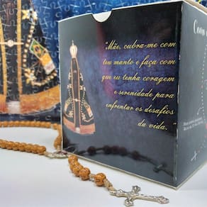 Quadro Decorativo Quebra-Cabeça Nossa Senhora Aparecida de 300 peças + Terço Especial Todo mundo gosta de dar uma arrumada na casa, deixá-la bem decorada, bonita e agradável renovando os ambientes, deixando o espaço muito bonito e cheio de estilo. Se tem algo que pode sem dúvida fazer a diferença na composição da sua casa é apostar em obras diferentes e únicas na sua decoração.