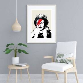 Quadro Queen Elizabeth - Pop Art - 60x48cm - Moldura: Madeira branca