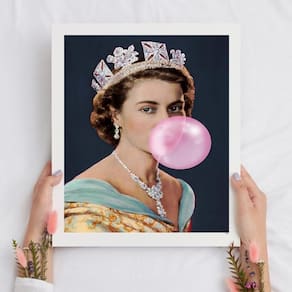 Quadro queen elizabeth with bubblegum 45x34cm Cor: moldura branca Informações do produto tire todas as suas dúvidas no descritivo abaixo: decoração para quarto, sala, cozinha, escritório, área gourmet e muito mais. Chega de paredes vazias. Medidas - cada peça tem 45x34cm a3 . Material do papel - papel fotográfico brilhante de altíssima resolução acabamento - todos os quadros são acompanhados de uma película de acetato para proteção da imagem. - os quadros são embalados de forma segura com plástico bolha com camada dupla de acordo com o tamanho dos quadros. Garantia - garantia de 3 meses. Meu quadro chegou. Como posso fixá-lo Você precisa apenas de um martelo e um prego, pois os quadros já vão acompanhados de penduradores. Esta é a forma mais indicada. Caso prefira, você pode utilizar uma fita dupla face neste caso, sugerimos de alta qualidade para evitar que descole e seu quadro caia . Como posso limpar meu quadro A limpeza é feita como um móvel comum da sua casa. Apenas um pano seco ou espanador são suficientes para tal