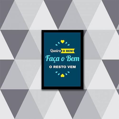 Quadro Queira O Bem, Faça O Bem, O Resto Vem 24X18Cm Moldura: madeira branca Informações do produto Decoração para quarto, sala, cozinha, escritório, área gourmet e muito mais. Chega de paredes vazias. Medidas - cada peça tem 24x18cm a5 . Material do papel - papel fotográfico brilhante de altíssima resolução Acabamento - todos os quadros são acompanhados de uma película de acetato para proteção da imagem. - moldura em madeira maciça na cor branca e pendurador móvel que pode ser retirado facilmente caso deseje fixar com fita dupla face. - os quadros são embalados de forma segura com plástico bolha com camada dupla de acordo com o tamanho dos quadros. - de 3 meses Meu quadro chegou. Como posso fixá-lo: Você precisa apenas de um martelo e um prego, pois os quadros já vão acompanhados de penduradores. Esta é a forma mais indicada. Caso prefira, você pode utilizar uma fita dupla face neste caso, sugerimos de alta qualidade para evitar que descole e seu quadro caia . Como posso limpar meu quadro: A limpeza é feita como um móvel comum da sua casa. Apenas um pano seco ou espanador são suficientes para tal Marca: Não Informado