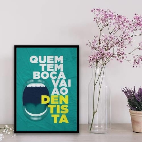 Quadro quem tem boca vai ao dentista 33x24cm Moldura: madeira preta