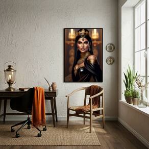 Quadro Rainha Cleópatra Última Faraó Antigo Egito - 70x50cm - Cor: Moldura Branca