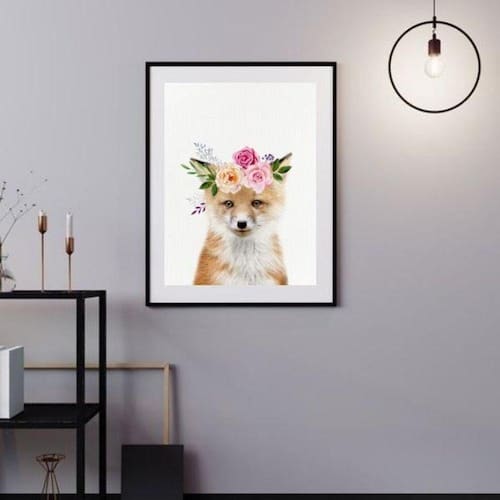 Quadro raposinha baby - flores - 60x48 cm