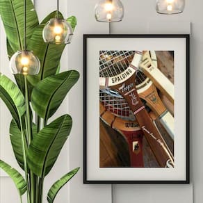 Quadro raquetes de tênis antiga - 60x48cm Moldura: madeira branca Informações do produto tire todas as suas dúvidas no descritivo abaixo: decoração para quarto, sala, cozinha, escritório, área gourmet e muito mais. Chega de paredes vazias medidas - cada peça tem 60x48cm . Material do papel - papel fotográfico brilhante de altíssima resolução acabamento - todos os quadros são acompanhados de vidro para proteção da imagem. - moldura em madeira maciça na cor preta ou branca conforme produto escolhido e pendurador. - paspatur branco com 7cm de largura - os quadros são embalados de forma segura com plástico bolha com camada dupla de acordo com o tamanho dos quadros. Garantia - garantia de 3 meses. Meu quadro chegou. Como posso fixá-lo Você precisa apenas de um martelo e um prego, pois os quadros já vão acompanhados de penduradores. Esta é a forma mais indicada. Como posso limpar meu quadro A limpeza é feita como um móvel comum da sua casa. Apenas um pano seco ou espanador são suficientes para tal