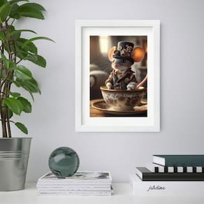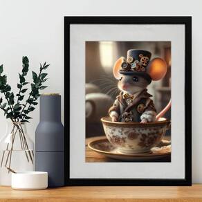 Quadro ratinho na xícara 60x48cm Cor: moldura preta Informações do produto tire todas as suas dúvidas no descritivo abaixo: decoração para quarto, sala, cozinha, escritório, área gourmet e muito mais. Chega de paredes vazias medidas - cada peça tem 60x48cm . Material do papel - papel fotográfico brilhante de altíssima resolução acabamento - todos os quadros são acompanhados de vidro para proteção da imagem. - moldura em madeira maciça na cor preta ou branca conforme produto escolhido e pendurador. - paspatur branco com 7cm de largura - os quadros são embalados de forma segura com plástico bolha com camada dupla de acordo com o tamanho dos quadros. Garantia - garantia de 3 meses. Meu quadro chegou. Como posso fixá-lo Você precisa apenas de um martelo e um prego, pois os quadros já vão acompanhados de penduradores. Esta é a forma mais indicada. Como posso limpar meu quadro A limpeza é feita como um móvel comum da sua casa. Apenas um pano seco ou espanador são suficientes para tal