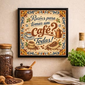 Quadro Razões Para Tomar Um Café 33x33cm Mold Preta