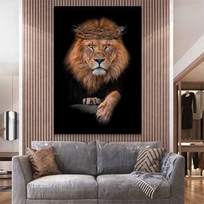 Quadro Realeza Do Leão Com Coroa -- Br Artes Quadro Realeza do Leão Com Coroa -- BR ARTES G (118 x 78) - Qualidade Premium (padrão museu)