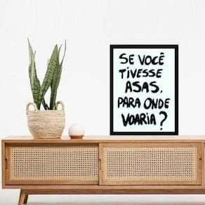 Quadro reflexão - se você tivesse asas 45x34cm - com vidro Moldura: madeira branca Informações do produto tire todas as suas dúvidas no descritivo abaixo: decoração para quarto, sala, cozinha, escritório, área gourmet e muito mais. Chega de paredes vazias medidas - cada peça tem 45x34cm a3 . Material do papel - papel fotográfico brilhante de altíssima resolução acabamento - todos os quadros são acompanhados de vidro para proteção da imagem. - moldura em madeira maciça na cor preta ou branca conforme produto escolhido e pendurador . - os quadros são embalados de forma segura com plástico bolha com camada dupla de acordo com o tamanho dos quadros. Garantia - garantia de 3 meses. Meu quadro chegou. Como posso fixá-lo Você precisa apenas de um martelo e um prego, pois os quadros já vão acompanhados de penduradores. Esta é a forma mais indicada. Como posso limpar meu quadro A limpeza é feita como um móvel comum da sua casa. Apenas um pano seco ou espanador são suficientes para tal