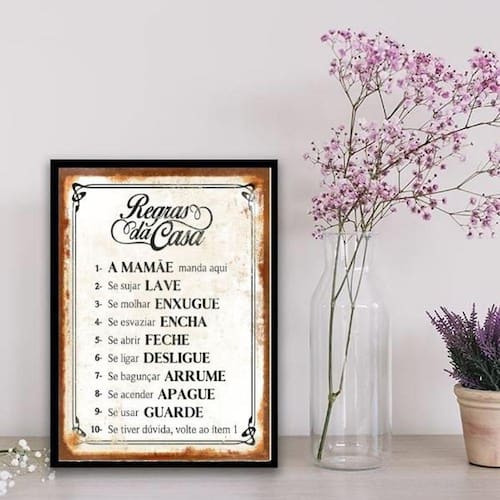 Quadro regras da casa 33x24cm Moldura: madeira branca